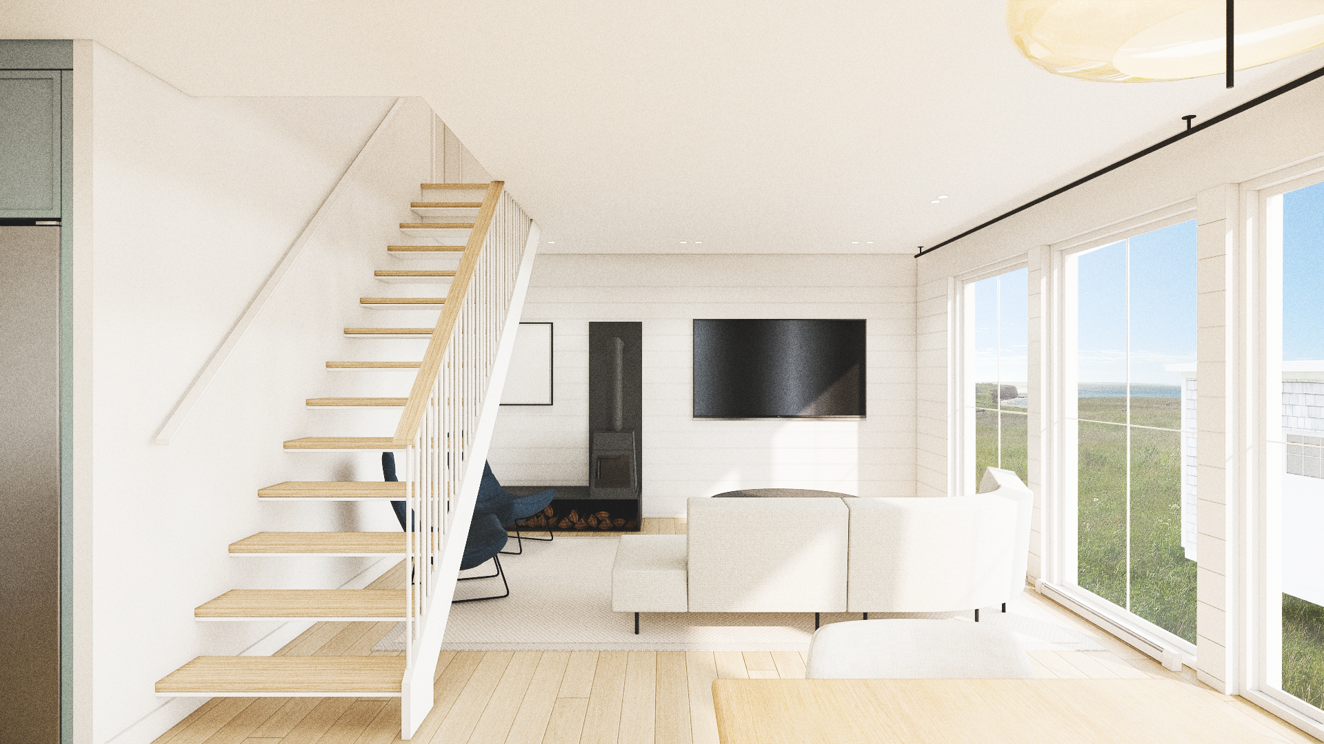 Les façades avant et latérales conservent le charme classique typique de l’architecture locale,tandis que la façade arrière a été repensée de manière plus moderne afin de maximiser les ouvertures et d’offrir une vue spectaculaire sur le golfe du Saint-Laurent, offrant à ses occupants une connexion forte avec le paysage.